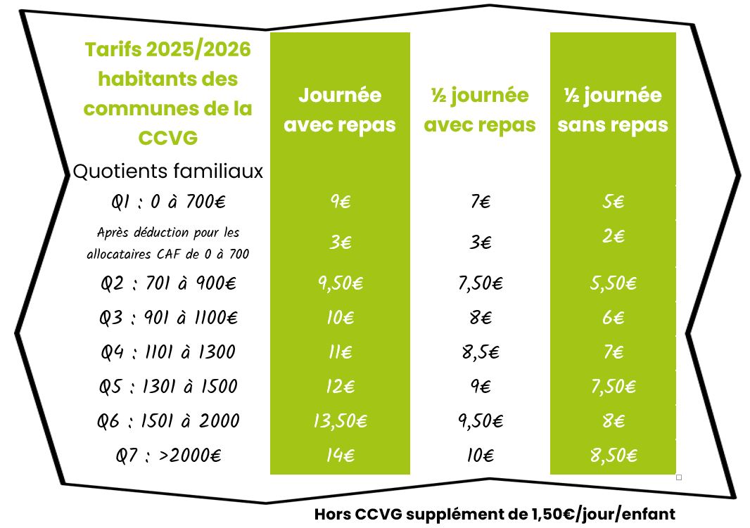Tarifs mercredis à partir du 1er septembre 2025